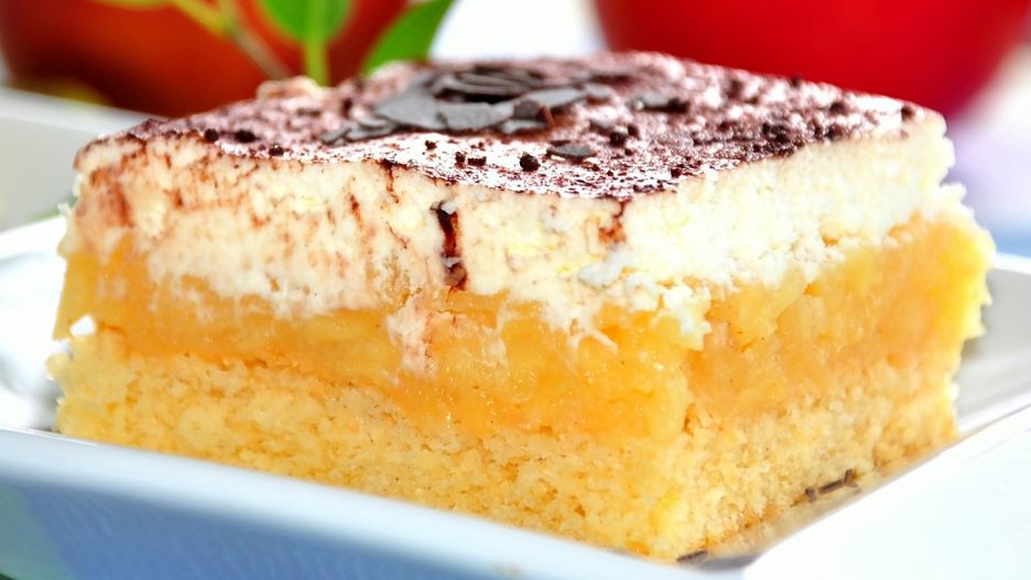 W odróżnieniu od klasycznego wydania tutaj mamy do czynienia z kruchym maślanym spodem, gigantyczną ilością aromatycznych jabłek, a przede wszystkim z dodatkową warstwą aksamitnej budyniowej pianki lub bezy, która nadaje całości lekkości tortu. To połączenie chrupiącej góry, kremowego środka i soczystych owoców sprawia, że każdy kęs to przyjemność.