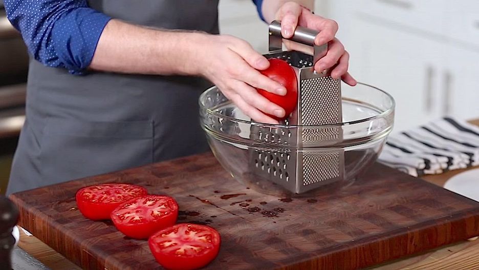 Uwaga! Teraz najlepsze: zetrzyj pomidory.
