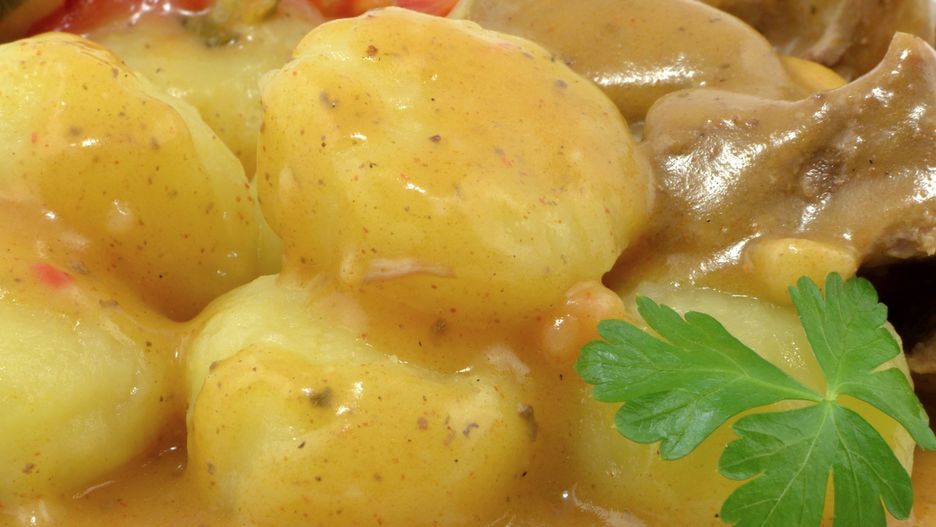 Szynka wieprzowa po długim duszeniu staje się miękka i soczysta, a oddając smak do wywaru, tworzy naturalną bazę sosu. Dodatek cebuli, czosnku i przypraw buduje aromat, a klasyczne zagęszczenie sprawia, że sos ma idealną konsystencję. To danie, które dobrze znosi odgrzewanie i często smakuje jeszcze lepiej następnego dnia.