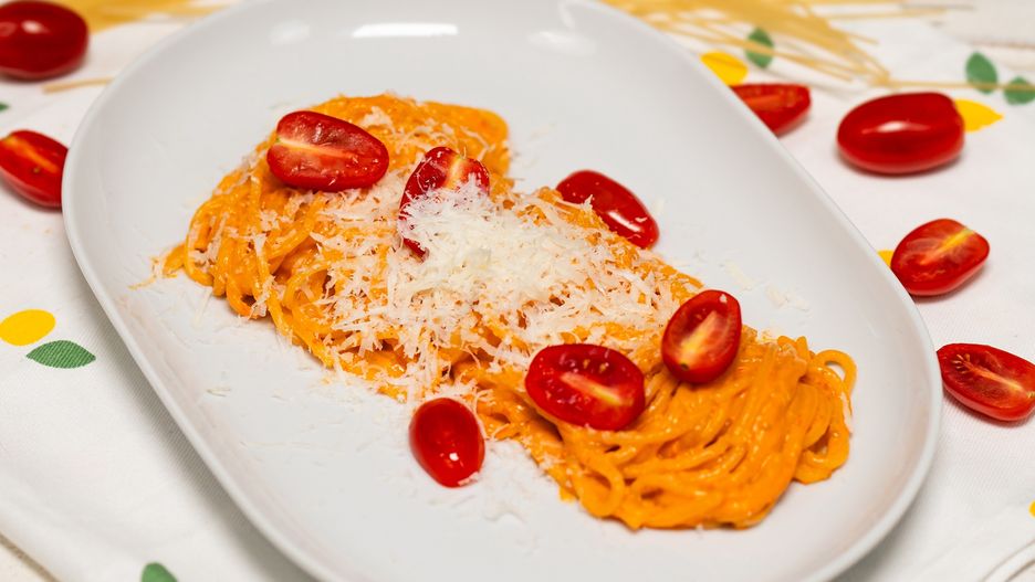 Ten przepis to bułka z masłem - wystarczy podduszone pomidorki zblendować wraz z burratą i połączyć z makaronem. Prosty sos ze śmietankową nutą jest tak smaczny, że ciężko powstrzymać się od wyjadania go łyżkami. Przygotowanie makaronowej uczty we włoskim stylu to nie tylko prosta, ale również szybka sprawa.