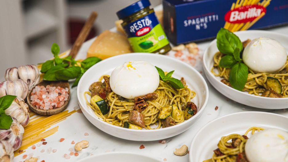 Kuchnia włoska jest smaczna i pożywna, a wiele przepisów możesz przygotować w mniej niż pół godziny. Na pewno znasz to uczucie: relaksujesz się po pracy na kanapie i nagle dostajesz smsa: będę za 15 minut. Zanim sięgniesz po ulotkę z jedzeniem na dowóz koniecznie wypróbuj ten przepis. W 15 minut przygotujesz pyszny i pożywny makaron, jakiego nie powstydziłaby się dobra restauracja. Wszystko dzięki prostemu połączeniu składników: pesto alla Genovese z Barilli, cukinii i suszonych pomidorów. Po prostu palce lizać!