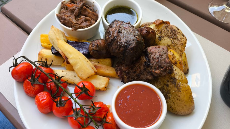 Nie jestem na tyle odważna, aby zamówić danie z bobrem w roli głównej. Kiedy jednak pojawia się na stole, zamówione przez innego gościa, próbuję kawałek. To mięso specyficzne, podobno bardzo trudne w przygotowaniu, bo twarde. W tym wydaniu przypomina w swojej formie szarpaną wieprzowinę, ale w smaku bliżej mu do wołowiny. Jest jednak słodkie, dość ciężkie i szczerze mówiąc niespecjalnie porywające. O wiele lepszy okazuje się stek wołowy czy też cepeliny.
