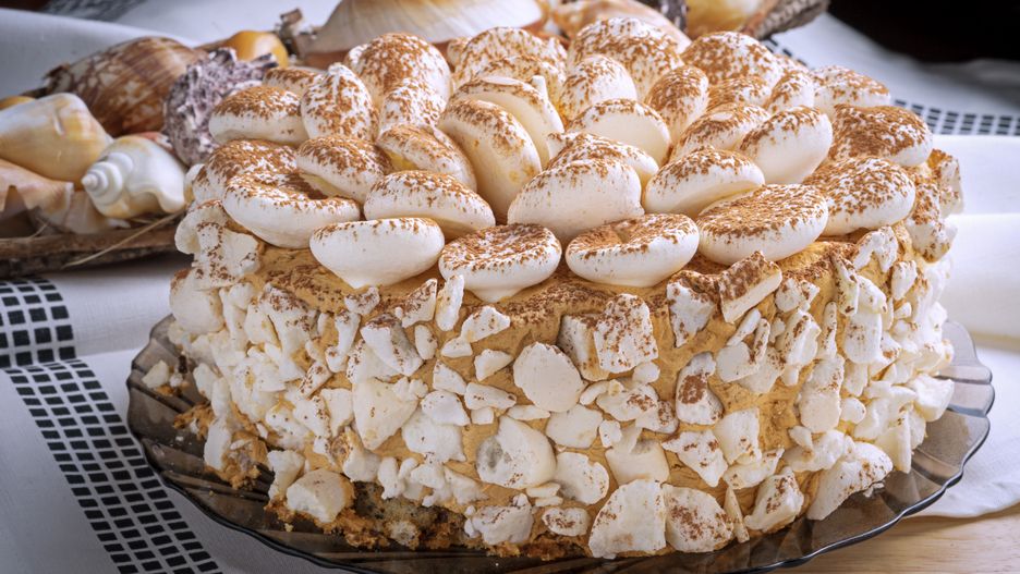 - Do masy adwokatowej dodaj połowę wcześniej przygotowanych bezików. Dokładnie wymieszaj. Nałóż krem na biszkopt i wyrównaj. Całość udekoruj pozostałymi bezikami. Wstaw deser do lodówki na kilka godzin.