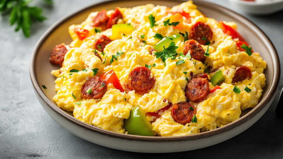 Chorizo produkowane jest z mielonej wieprzowiny, z dodatkiem papryki, czosnku i przypraw. Istnieje wiele odmian, które różnią się składem i sposobami produkcji. Najbardziej cenione jest chorizo iberico, wykonane z mięsa czarnych świń iberyjskich, które mają korzystny wpływ na zdrowie z uwagi na wysoką zawartość tłuszczów nienasyconych. Chorizo zyskało popularność na całym świecie, nie tylko w Hiszpanii, ale też w Ameryce Łacińskiej. Jest kluczowym składnikiem wielu potraw, takich jak paella czy zupy. Jego charakterystyczny, pikantny smak dobrze komponuje się z delikatnymi składnikami, a jajecznica jest tego najlepszym przykładem.