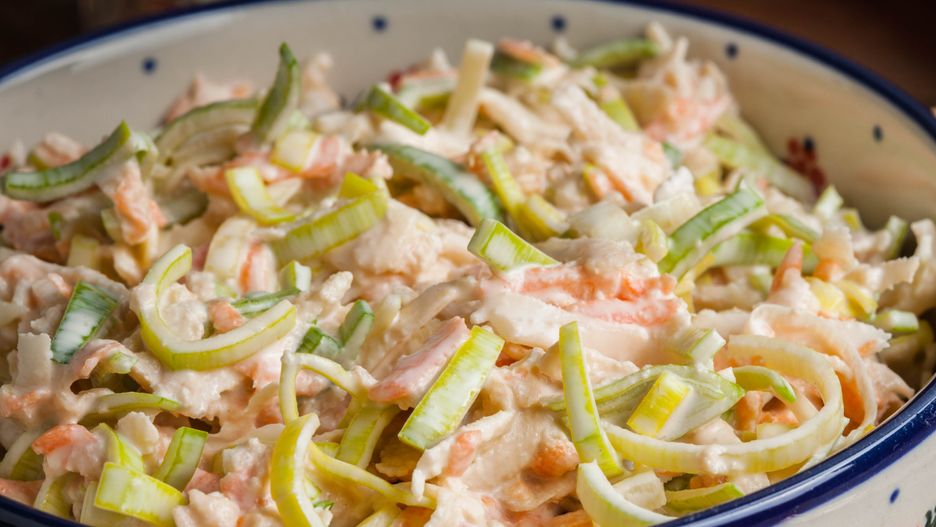 Chociaż z ekspresową surówką do obiadu kojarzy się nam przede wszystkim wspomniana chwilę wcześniej mizeria czy sałata ze śmietaną, to Tomasz Strzelczyk ma równie szybką propozycję. Chrupiąca surówka z pora z dodatkiem marchewki i gruszki, podkręca pysznym sosem, zniknie błyskawicznie.