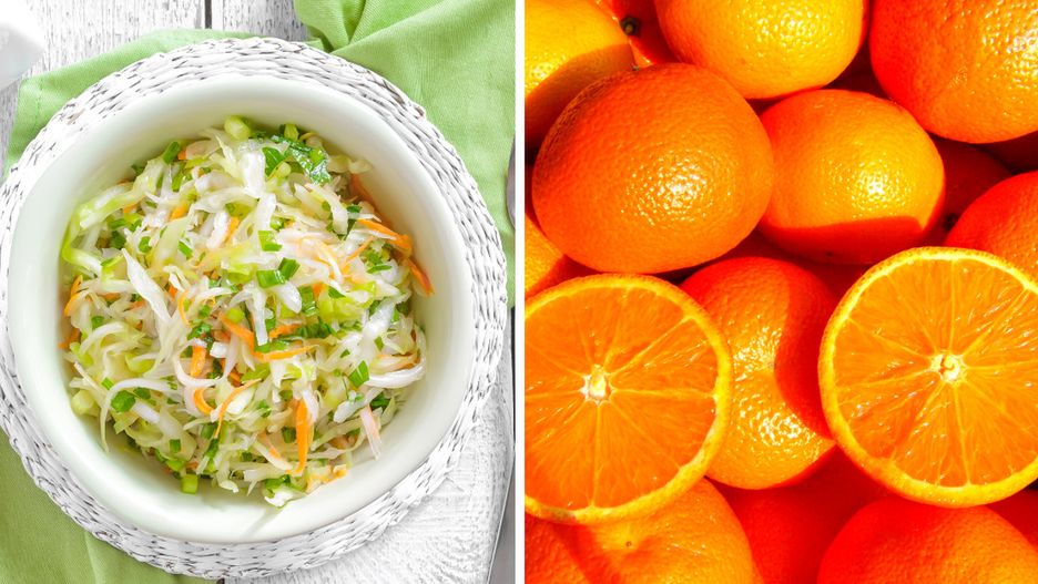 Sposób przygotowania surówki do ryb z białej kapusty z dodatkiem pomarańczy: