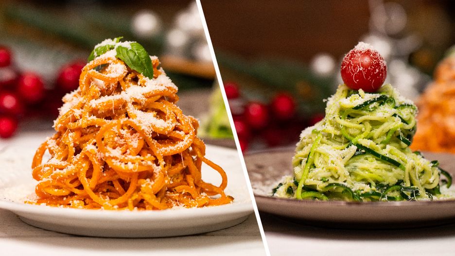 Świąteczne choinki z zoodlowanych warzyw z pesto zachwycają swoją oryginalnością. Nie sposób nie wspomnieć również o ich genialnym smaku. Idealna kombinacja!