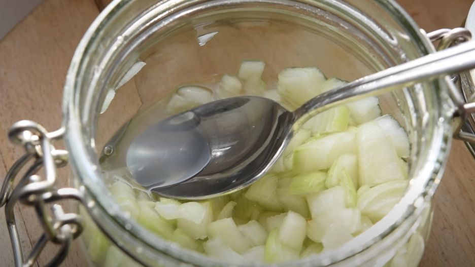 Zamknij słoik i odstaw na 2-3 godziny. Co jakiś czas możesz lekko wstrząsnąć słoikiem. Po tym czasie na dnie zacznie zbierać się pyszny syrop. Po jego wylaniu staraj się nie dodawać więcej cukru, chyba że cebula przestanie z nim reagować i na dnie nie pojawi się nowa warstwa płynu.