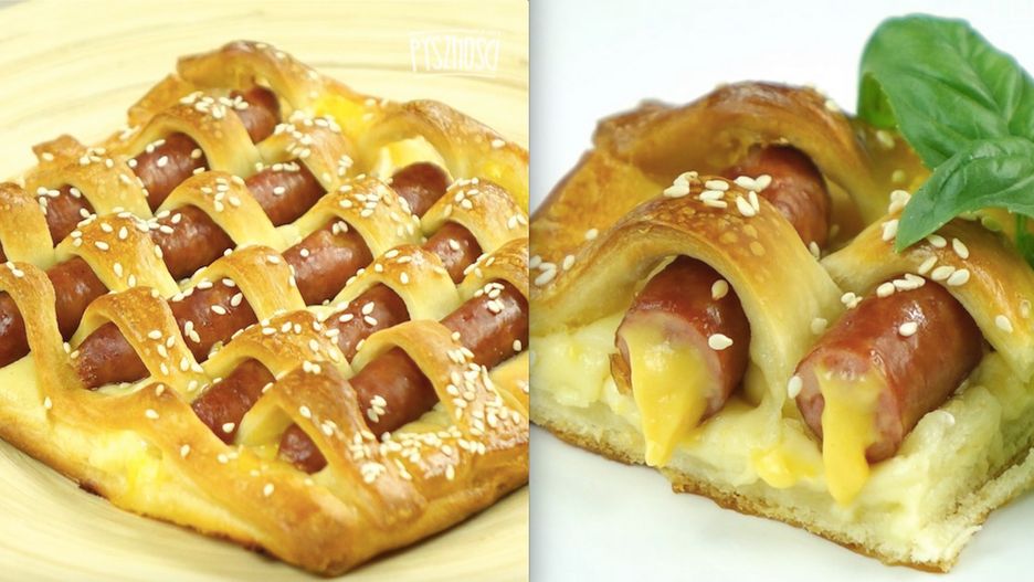 Poniżej zobaczysz przepis na przyrządzenie pysznej szachownicy z nadziewanymi kiełbaskami i serem.