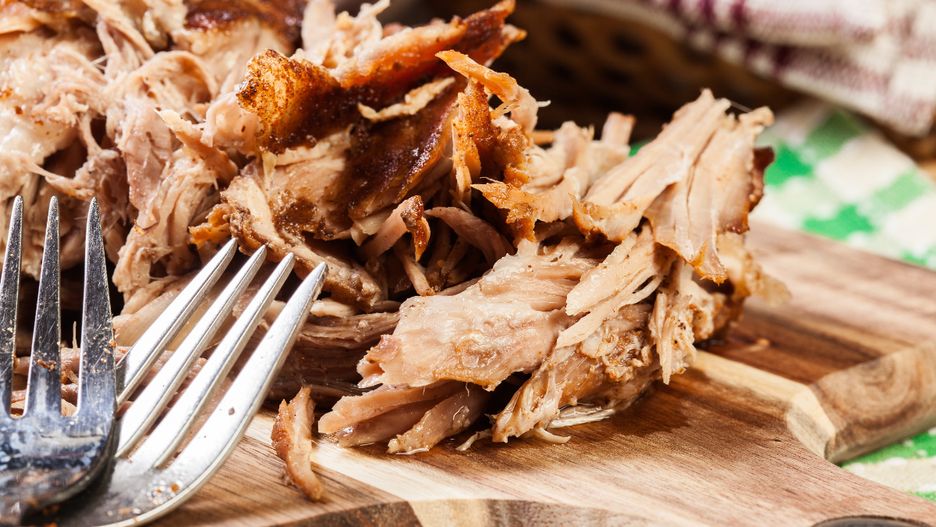 - Przełóż wieprzowiną i cebulę do naczynia żaroodpornego. Przykryj i wstaw do rozgrzanego do 150 stopni piekarnika. Piecz przez 3,5 godziny. Na koniec, za pomocą widelców rozdziel mięso (będzie mięciutkie, więc nie będziesz miał z tym problemów), uzyskując "poszarpaną" konsystencję. Podawaj posypane kminem rzymskim i czosnkiem granulowanym. Smacznego!