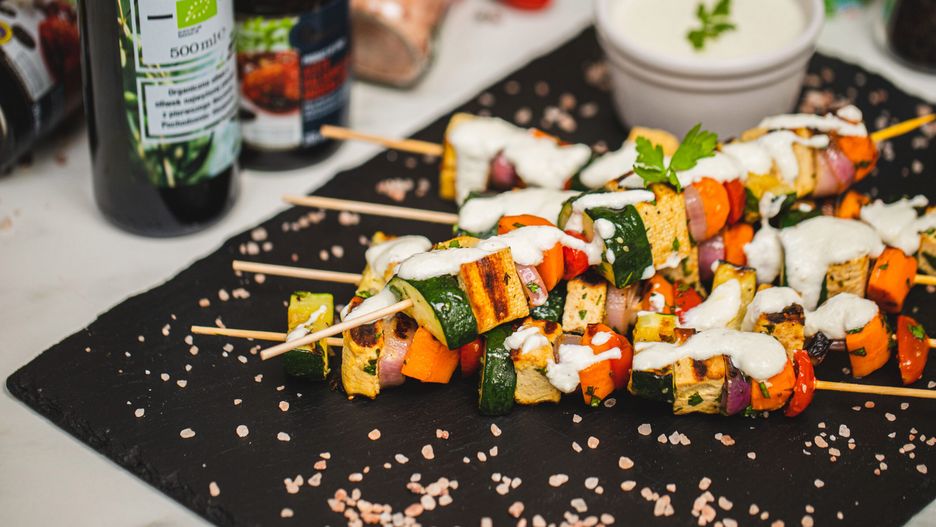 Wegetariańskie szaszłyki z tofu i dipem z fety i jogurtu błyskawicznie znikną z grilla. Pyszne, lekkie i proste