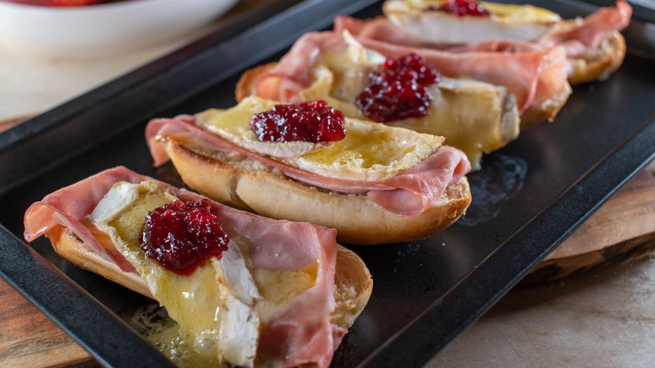 Kropką nad "i" jest dodatek żurawiny - jej cierpkość przełamuje bogactwo sera i szynki. Całość podana na chrupiącej bagietce lub innej pieczonej bułce - chrupiąca przyjemność, której po prostu trudno się oprzeć. Tak naprawdę, możesz zrobić je sobie na kolację, a nie musisz zapraszać gości.
