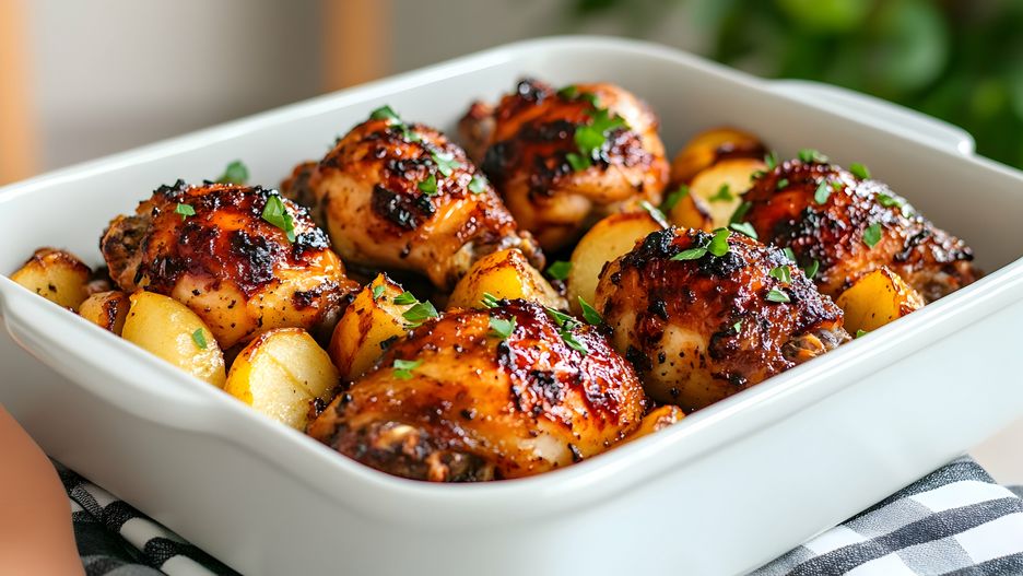 To połączenie soczystych udek kurczaka, młodych ziemniaków, brukselki i korzennych przypraw. Idealne na chłodniejsze dni i świetne także jako meal prep na kolejne dni tygodnia.