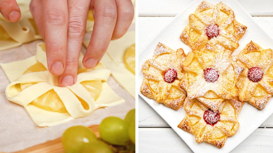 Szybkie ciasteczka z ananasem na cieście francuskim. Słodka przekąska w kilka minut