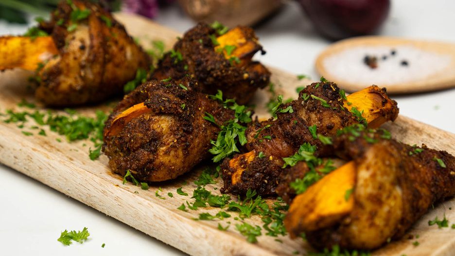 Podudzia z kurczaka wytrybuj tak, aby pozbyć się kości. Nożyczkami lub nożem natnij mięso wokół dolnej części podudzia. Następnie odkrój mięso wzdłuż kości i powoli, kawałek po kawałku, odsuń w stronę dolnej części podudzia.Ręką ściągnij całe mięso z kości i gotowe. Zerknij na filmik- tam dokładnie pokazujemy, jak to zrobić.