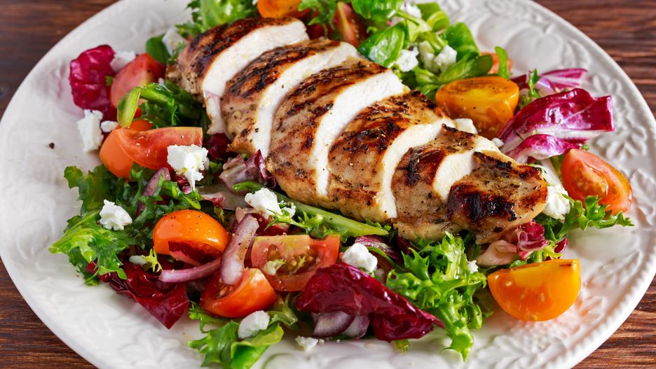 - duża, upieczona bądź grillowana pierś z kurczaka,