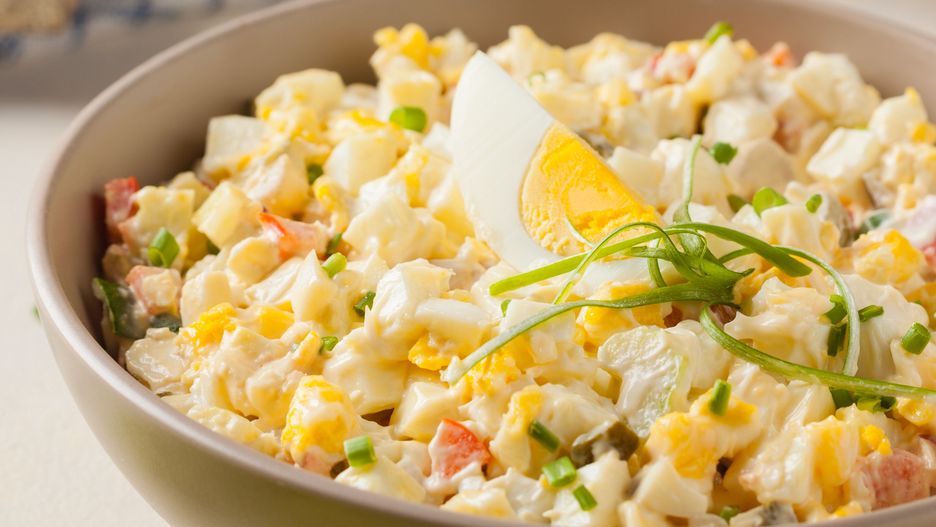 Ponadto kluczowe są ugotowane na twardo jajka oraz podsmażone filety z kurczaka. Niektórzy dodają też gotowane ziemniaki i czerwoną paprykę, ale kukurydza z puszki wystarczy, by wzbogacić walory smakowe tej sałatki.