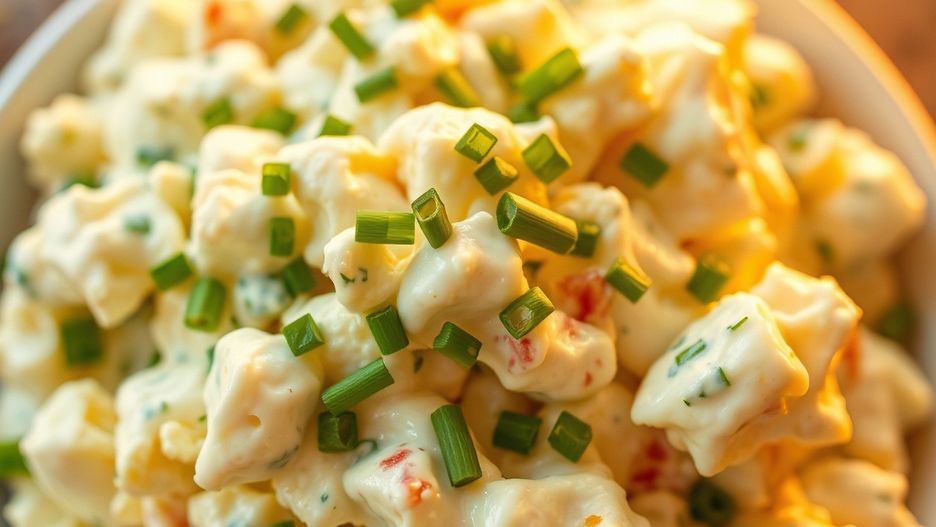 Dlaczego ta sałatka robi taką robotę? Kalafior zastępuje ziemniaki, dzięki czemu sałatka jest lżejsza i nie zapycha. Do tego zawiera sporo błonnika, witamin C i K, które wspierają odporność i układ krwionośny. Jajka dostarczają białka i zdrowych tłuszczów, więc po tej sałatce nie czujesz się syty, a nie napchany. Jogurt naturalny równoważy majonez, nadając całości lekkości, a szczypiorek wspiera trawienie i działa lekko odkażająco.