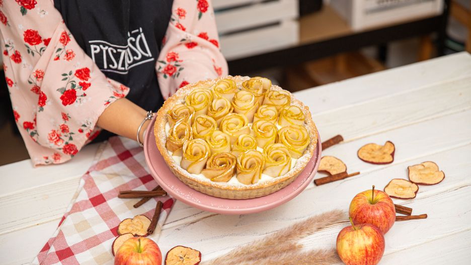 Pyszna krucha tarta z różyczkami jabłkowymi i budyniem to przepis na pyszny deser w jesiennym wydaniu. Dzięki takiej formie podania zamienia się w jadalne dzieło sztuki, które będzie piękną dekoracją stołu.