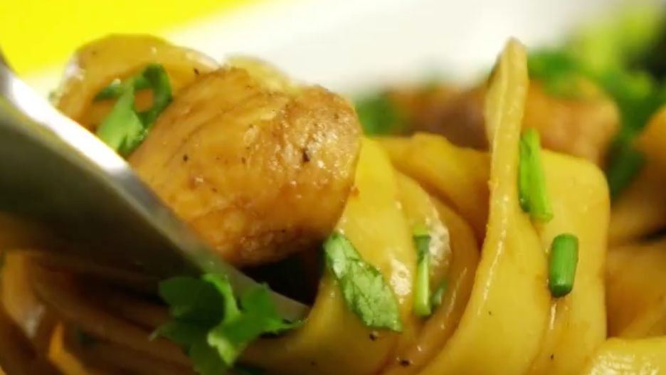 Tagliatelle z kurczakiem i sosem sojowym