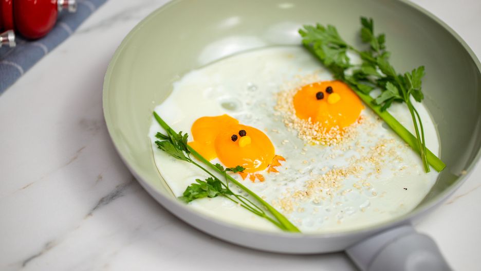 Podstawą dekoracji jest płynne żółtko, więc lepiej zachować czujność podczas smażenia. Złociste żółtka i delikatne, dopiero co ścięte białka — klasyczne jajka sadzone aż proszą się o zjedzenie.