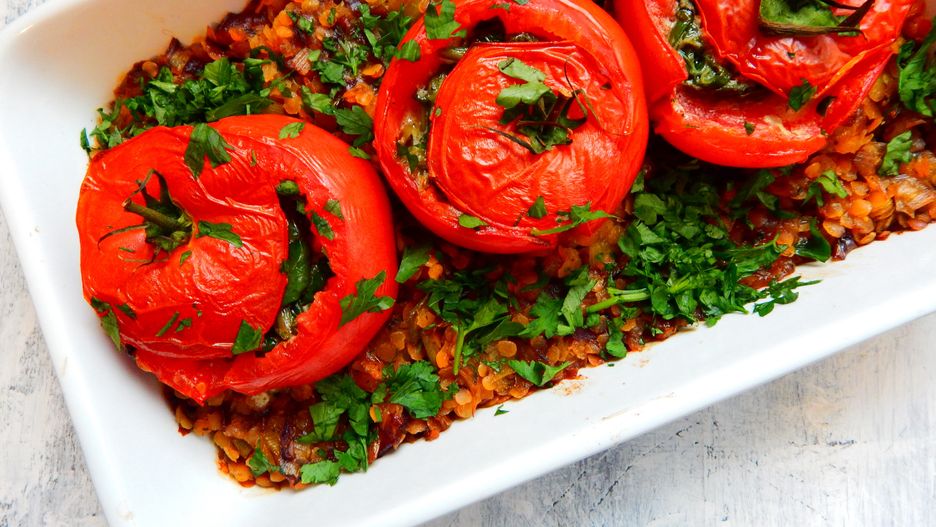 Dlaczego warto jeść pomidory i to w każdej formie? Mają wiele wartości odżywczych, ale przede wszystkim słyną z likopenu, który opóźnia starzenie komórek, chroni siatkówkę oka i ma działanie antynowotworowe. Co ważne, ilość tego cennego związku kilkakrotnie zwiększa się pod wpływem obróbki termicznej. Dlatego warto pomidory gotować, piec, dusić i faszerować. Do nadziewania najlepiej nadają się duże pomidory, na przykład malinowe.