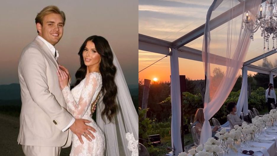 Para wiosną wzięła ślub cywilny, ale to kościelna uroczystość stała się okazją do celebrowania miłości wraz z bliskimi. Roxie Węgiel zaprosiła ich do winnicy "Piwnice Półtorak" w Witryłowie nad Sanem, zapewniającej prywatność całej uroczystości. Piękne otoczenie winorośli i zachwycający zachód słońca przeniosły gości we włoski klimat, który widać było również w weselnym menu.