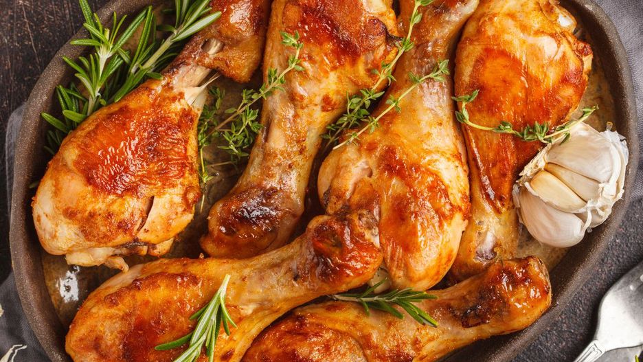 - Podudzia układamy na blaszce i nacieramy mieszanką roztopionego masła, rozmarynu oraz czosnku.