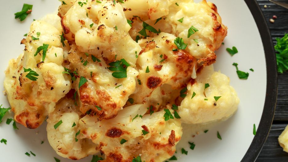 Na czym polega odmiana? Oczywiście wiąże się ona z panierką, w której będziemy przyrządzać kalafiora. Jak już wspomnieliśmy, zwykle jest ona przygotowywana z bułki tartej. Nikt jednak nie powiedział, że tak musi być zawsze. Jak się okazuje, zastąpienie tego składnika parmezanem to smakowy strzał w dziesiątkę, a serowy posmak gotowego dania zrobi wrażenie nawet na największych Tadkach-Niejadkach. I uwaga: jest coś jeszcze. Naszego kalafiora nie będziemy smażyć, lecz piec. A więc: pysznie, łatwo i zdrowo. Czy może być lepiej?