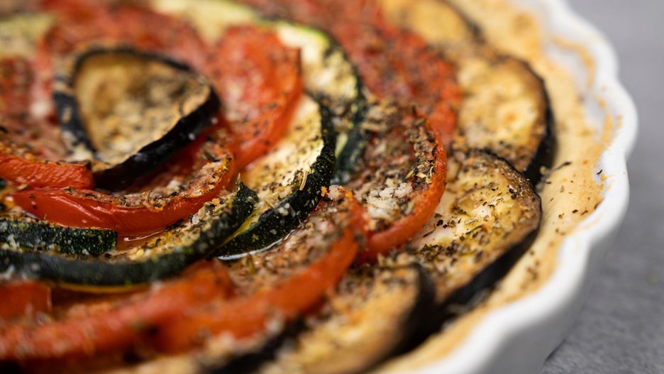 Tarta z bakłażanem, pomidorem i cukinią