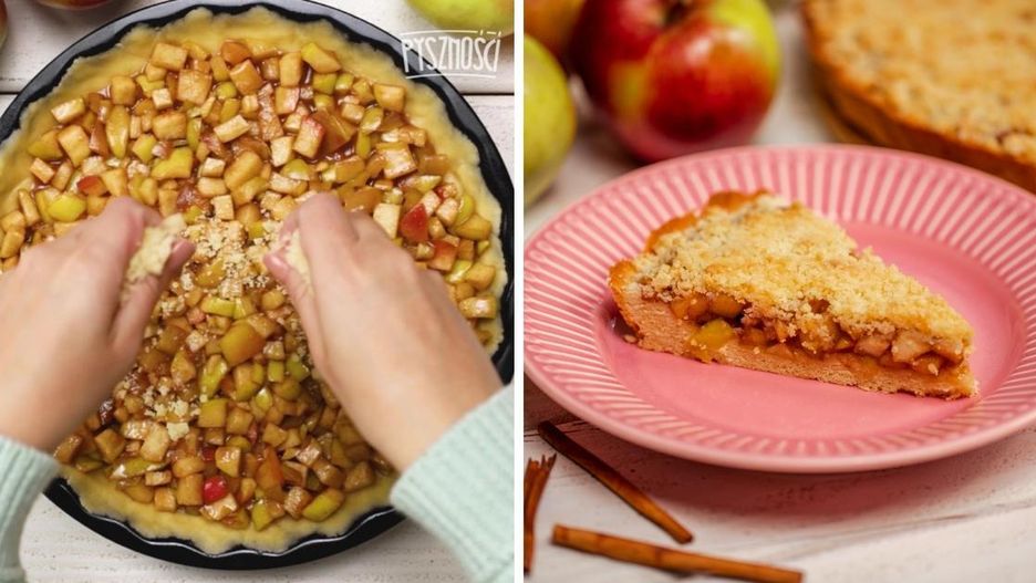 Krucha tarta z karmelizowanymi jabłkami i kruszonką. Jak zrobić szarlotkę na ciepło?