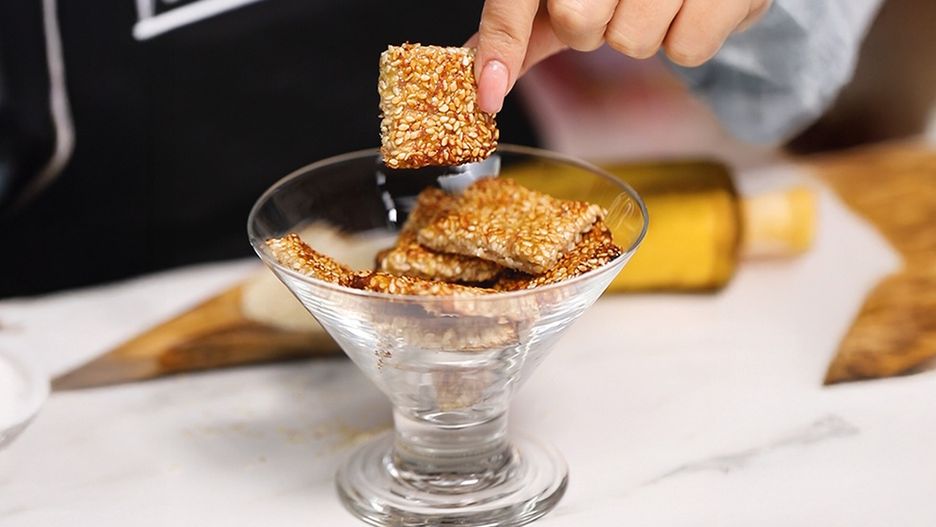 Zanim jednak przejdziesz do instrukcji, pamiętaj, aby użyć do przepisu mocno dojrzałego banana. I to z dwóch powodów. Po pierwsze, owoc w takiej formie jest idealnie słodki, dlatego nie będziesz potrzebować dodatkowych słodzików. Po drugie, dojrzały banan stanie się idealnym "ciastem", które w szybki i prosty sposób połączy się z sezamem. Praca z nim będzie więc czystą przyjemnością.