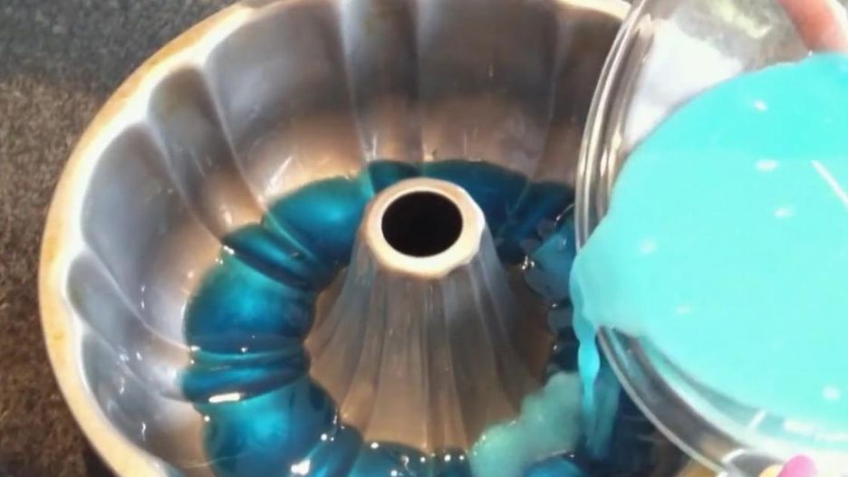 Wymieszaj wszystkie suche składniki, a następnie dodaj mokre. Masę rozłóż po równo do 5 misek i dodaj do nich różne kolory barwników. Następnie włóż je do zamykanych folii. Utnij róg każdej z torebek i potraktuj je jak rękaw cukierniczy i na zmianę formuj na gofrownicy zawijany kształt. Rób gofry tak jak zwykle.