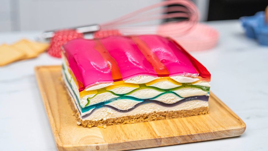 Tęczowy sernik z galaretką