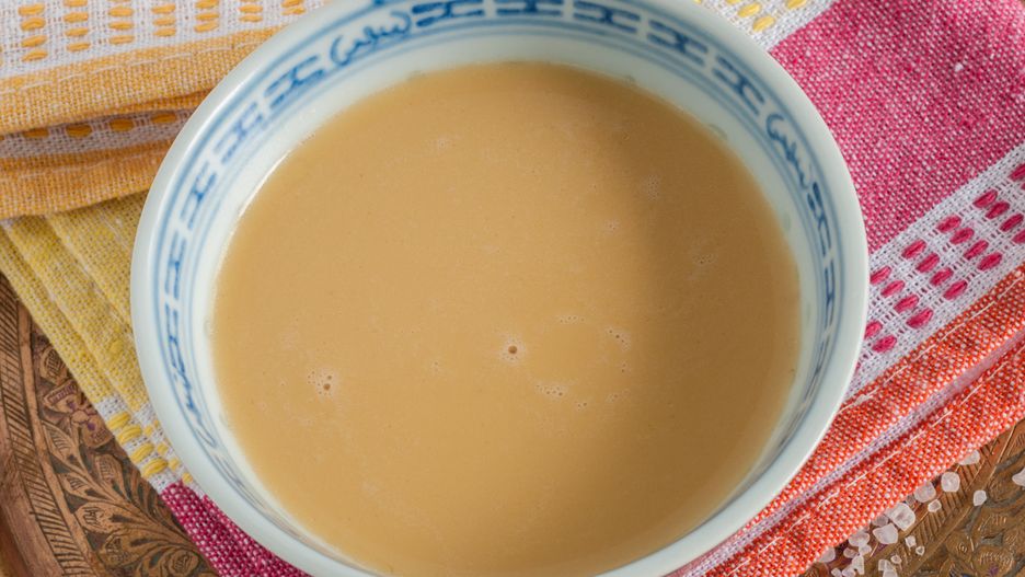 - Przecedź herbatę przez drobne sitko, dodaj masło, sól i mleko a następnie, zacznij energicznie mieszać lub zmiksuj, aż napój stanie się jednolity. Gotowe!