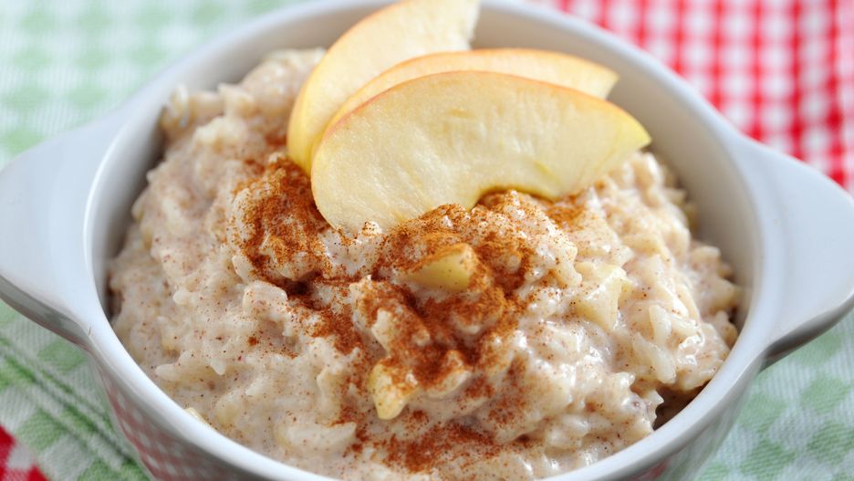 - Kiedy ryż napęcznieje, dodaj do garnka jabłka, cynamon, sól oraz brązowy cukier.