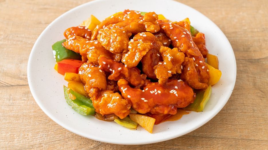 - Kurczaka wyjmij z lodówki i usmaż na gorącym tłuszczu. Na koniec dodaj go do gotowego sosu.