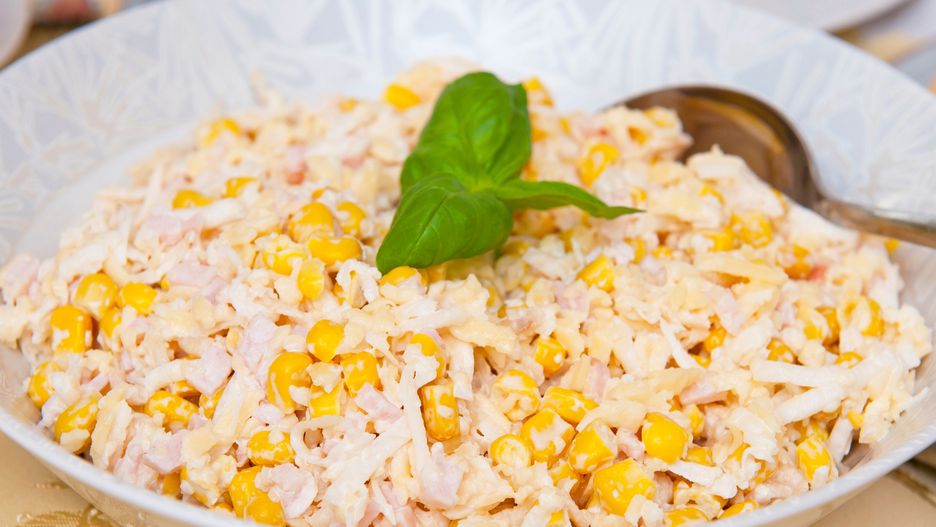 Moja teściowa robi tę sałatkę niemal na każdą imprezę rodzinną, a do dziś nikomu się jeszcze nie znudziła. Słodka kukurydza oraz ananas przyjemnie łączą się z delikatnie chrupiącym, lekko octowym selerem konserwowym, mięciutką szynką i pikantnym porem. To proste połączenie przypadnie do gustu wszystkim domownikom, bo po porcję nieraz sięgają nawet ci najmłodsi.