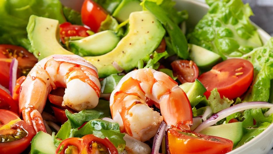 To mój pomysł na krewetki. Robię z nimi pożywną sałatkę