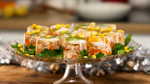 Myśląc o imprezowym menu, na pewno przed oczami w pierwszej kolejności pojawia ci się kultowa galareta. Można przygotować ją na wiele ciekawych sposobów. I dziś chcielibyśmy zachęcić cię do przetestowania jednego z takich rozwiązań. Co powiesz na galaretki drobiowe z dodatkiem kolorowych warzyw i jajka w formie tymbalików? Jeśli ten opis cię zaciekawił, koniecznie obejrzyj nasze wideo z dokładną instrukcją. Lista składników czeka poniżej.