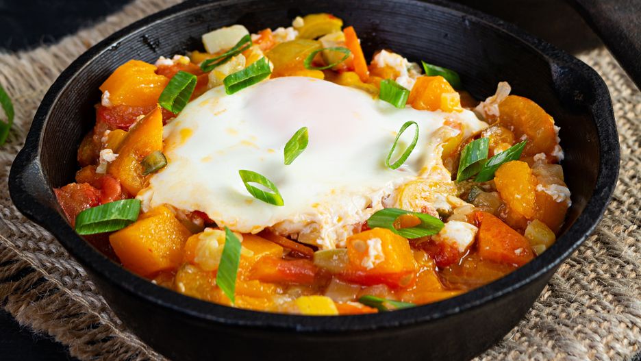 Szakszuka już na stałe zadomowiła się w polskiej kuchni. Klasyczną wersję znają nawet przedszkolaki. Teraz czas na zmiany, modyfikacje i eksperymenty, które są wręcz wpisane w nasze DNA. Jesienią sięgnij po dynię, banię lub korbol – bez względu na nazwę, to dodatek, który wzbogaci walory smakowe i odżywcze tego śniadania.