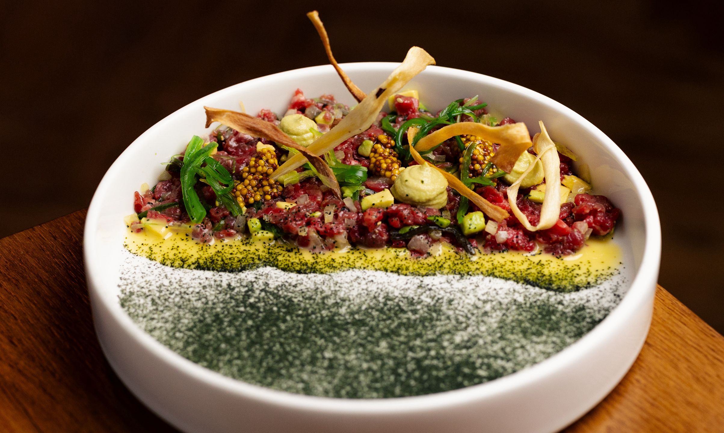 Gdańska 14 w Bydgoszczy to restauracja, gdzie smaki zmieniają się wraz z porami roku, a kuchnia brawurowo łączy tradycję z nowoczesnością. Tu klasyczne techniki kulinarne splatają się z innowacyjnymi pomysłami, tworząc dania, które nie tylko zachwycają smakiem, ale też uwodzą estetyką i teksturami. Podczas RestaurantWeek® można spróbować dwóch autorskich menu. W propozycji A królują wyraziste potrawy – tatar wołowy z piklowanymi warzywami i korzenną bagietką, marynowany w maślance stek ze schabu z chrupiącą włoską kapustą, jabłkiem i popcornem gryczanym, a na deser mus z białego sera z espumą mango i karmelizowanym słonecznikiem. Menu B to ukłon w stronę warzywnych kompozycji. Przystawka to krem z buraka z chrzanowymi kopytkami i fetą, danie główne - stek z cukinii w towarzystwie czerwonego curry, hummusu marchewkowego i jogurtu, a na zakończenie tej uczty - słodkie cappuccino z kremem toffi, jagodową konfiturą i kruszoną belgijską czekoladą. Daj się zachwycić!