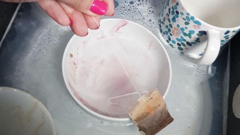 Mocz naczynia z zaschniętym jedzeniem przez całą noc. Do wody dodaj torebkę herbaty. Występująca w herbacie tanina świetnie poradzi sobie z tłuszczem i zabrudzeniami, dzięki czemu zmywanie naczyń stanie się bajecznie proste.
