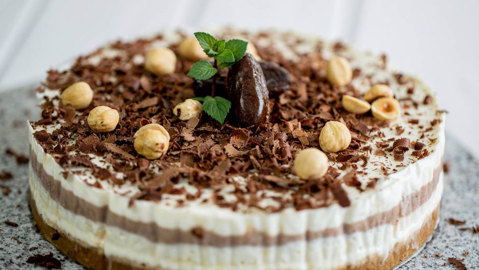 6. Ciemną mieszankę rozprowadź w formie i ponownie wstaw do lodówki. Kiedy warstwa stężeje, dodaj drugą część białej mieszanki i umieść deser po raz trzeci w lodówce.