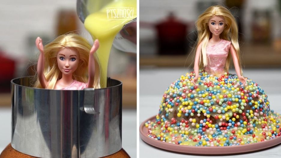 Jeśli szukasz pomysłu na tort urodzinowy dla swojego dziecka, to trafiłeś idealnie. Mamy dla Ciebie przepis na tort z lalką Barbie, który każdy maluch pokocha od pierwszego wejrzenia. W roli sukienki dla lalki występuje tutaj prostu biszkopt. Całość oblana jest białą czekoladą i kolorową posypką. Efekt robi wrażenie, a sam proces przygotowania jest naprawdę prosty. Zobacz jak przygotować tort Księżniczka.