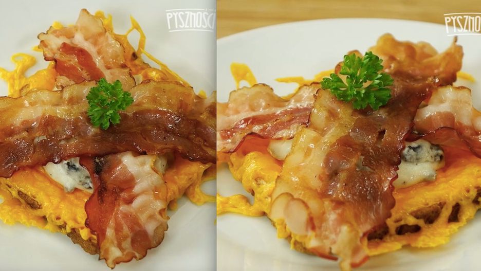 Pyszne tosty z jajkiem, serem, pieczarkami i boczkiem