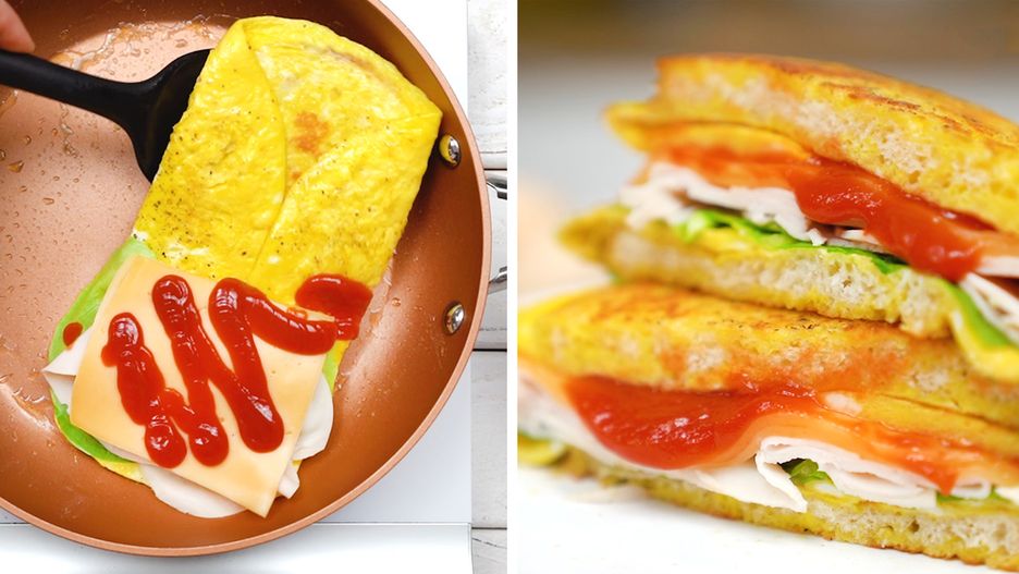 Tost w omlecie z szynką i sałatą - błyskawiczne i pyszne śniadanie z patelni