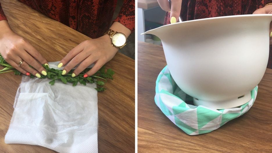 Wystarczy, że na blacie położysz wilgotny ręcznik papierowy i na nim ułożysz bezpośrednio deskę do krojenia. I to wszystko!
