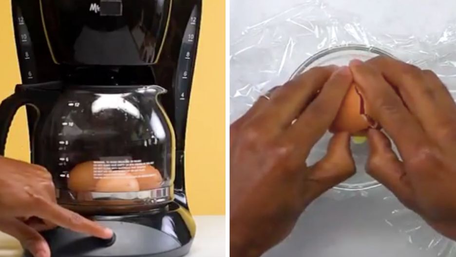 Umieść jajka w ekspresie do kawy na 10 minut. Naciśnij mocno na ugotowane jajko i przeroluj je kilka razy. I w ten oto sposób pozbędziesz się skorupki w mgnieniu oka!