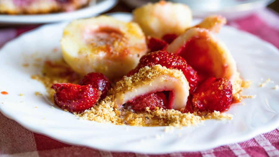 W sezonie letnim, kiedy dostępne są pyszne, świeże truskawki, byłoby grzechem nie wykorzystać ich do przygotowania tych znakomitych klusek. Smak dania podkreśla wanilia, a ewentualną mdłość przełamuje świeżo wyciśnięty sok z cytryn. Zamiast orzechowej panierki możesz zdecydować się na dodatek śmietany lub owocowego musu. Tak przygotowane knedle to idealna propozycja na obiad dla całej rodziny.